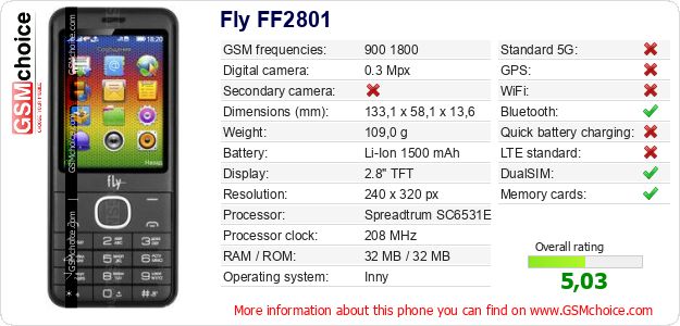 Do you have your website? Do you want to insert information about basic phone data of Fly FF2801 somewhere? It is very easy. You can download the picture, or copy and paste the code below on the page:Pasting this code will display the following image: