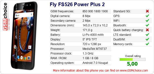 Do you have your website? Do you want to insert information about basic phone data of Fly FS526 Power Plus 2 somewhere? It is very easy. You can download the picture, or copy and paste the code below on the page:Pasting this code will display the following image: