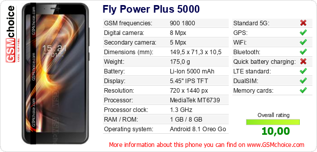 Do you have your website? Do you want to insert information about basic phone data of Fly Power Plus 5000 somewhere? It is very easy. You can download the picture, or copy and paste the code below on the page:Pasting this code will display the following image: