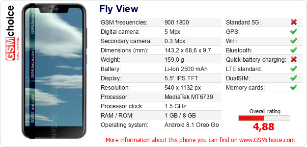 Do you have your website? Do you want to insert information about basic phone data of Fly View somewhere? It is very easy. You can download the picture, or copy and paste the code below on the page:Pasting this code will display the following image: