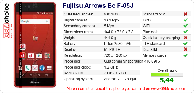 Do you have your website? Do you want to insert information about basic phone data of Fujitsu Arrows Be F-05J somewhere? It is very easy. You can download the picture, or copy and paste the code below on the page:Pasting this code will display the following image: