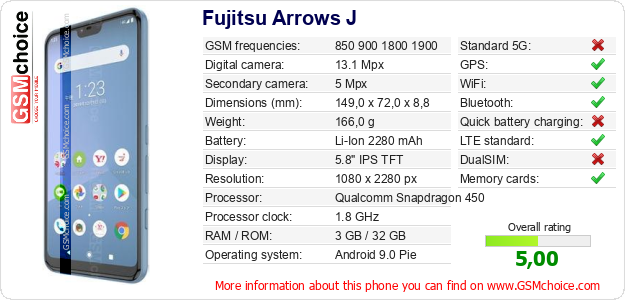 Do you have your website? Do you want to insert information about basic phone data of Fujitsu Arrows J somewhere? It is very easy. You can download the picture, or copy and paste the code below on the page:Pasting this code will display the following image: