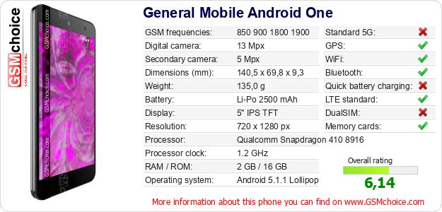 Do you have your website? Do you want to insert information about basic phone data of General Mobile Android One somewhere? It is very easy. You can download the picture, or copy and paste the code below on the page:Pasting this code will display the following image: