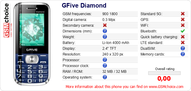 Do you have your website? Do you want to insert information about basic phone data of GFive Diamond somewhere? It is very easy. You can download the picture, or copy and paste the code below on the page:Pasting this code will display the following image: