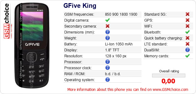 Do you have your website? Do you want to insert information about basic phone data of GFive King somewhere? It is very easy. You can download the picture, or copy and paste the code below on the page:Pasting this code will display the following image:
