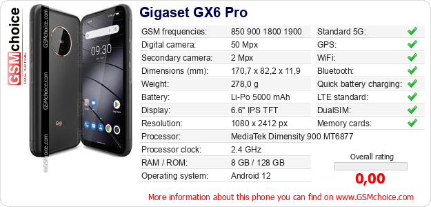 Do you have your website? Do you want to insert information about basic phone data of Gigaset GX6 Pro somewhere? It is very easy. You can download the picture, or copy and paste the code below on the page:Pasting this code will display the following image: