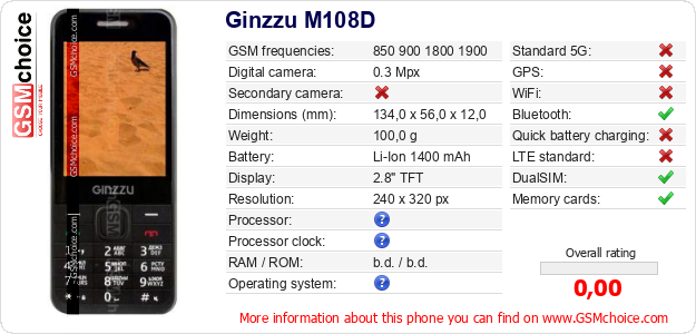 Do you have your website? Do you want to insert information about basic phone data of Ginzzu M108D somewhere? It is very easy. You can download the picture, or copy and paste the code below on the page:Pasting this code will display the following image: