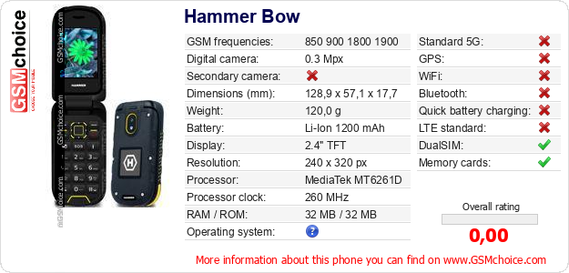 Do you have your website? Do you want to insert information about basic phone data of Hammer Bow somewhere? It is very easy. You can download the picture, or copy and paste the code below on the page:Pasting this code will display the following image: