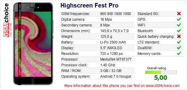 Do you have your website? Do you want to insert information about basic phone data of Highscreen Fest Pro somewhere? It is very easy. You can download the picture, or copy and paste the code below on the page:Pasting this code will display the following image: