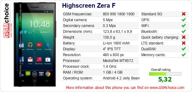 Do you have your website? Do you want to insert information about basic phone data of Highscreen Zera F somewhere? It is very easy. You can download the picture, or copy and paste the code below on the page:Pasting this code will display the following image: