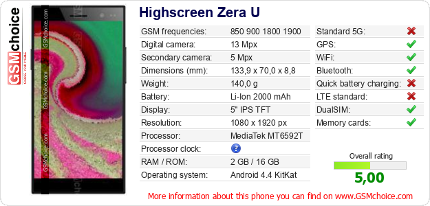 Do you have your website? Do you want to insert information about basic phone data of Highscreen Zera U somewhere? It is very easy. You can download the picture, or copy and paste the code below on the page:Pasting this code will display the following image: