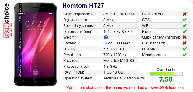 Do you have your website? Do you want to insert information about basic phone data of Homtom HT27 somewhere? It is very easy. You can download the picture, or copy and paste the code below on the page:Pasting this code will display the following image: