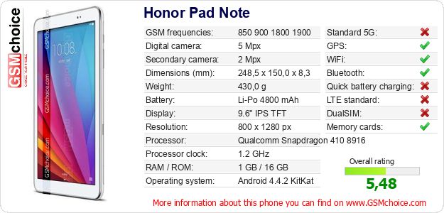 Do you have your website? Do you want to insert information about basic phone data of Honor Pad Note somewhere? It is very easy. You can download the picture, or copy and paste the code below on the page:Pasting this code will display the following image: