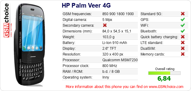 Do you have your website? Do you want to insert information about basic phone data of HP Palm Veer 4G somewhere? It is very easy. You can download the picture, or copy and paste the code below on the page:Pasting this code will display the following image: