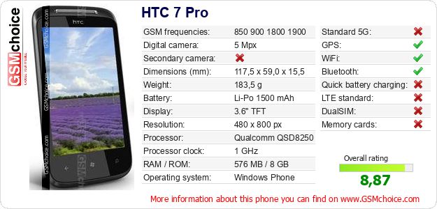 Do you have your website? Do you want to insert information about basic phone data of HTC 7 Pro somewhere? It is very easy. You can download the picture, or copy and paste the code below on the page:Pasting this code will display the following image: