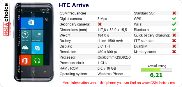 Do you have your website? Do you want to insert information about basic phone data of HTC Arrive somewhere? It is very easy. You can download the picture, or copy and paste the code below on the page:Pasting this code will display the following image: