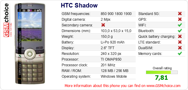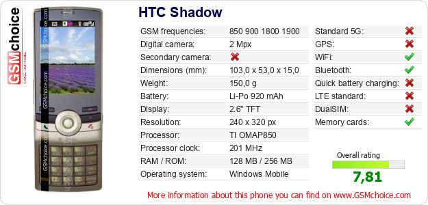 Do you have your website? Do you want to insert information about basic phone data of HTC Shadow somewhere? It is very easy. You can download the picture, or copy and paste the code below on the page:Pasting this code will display the following image: