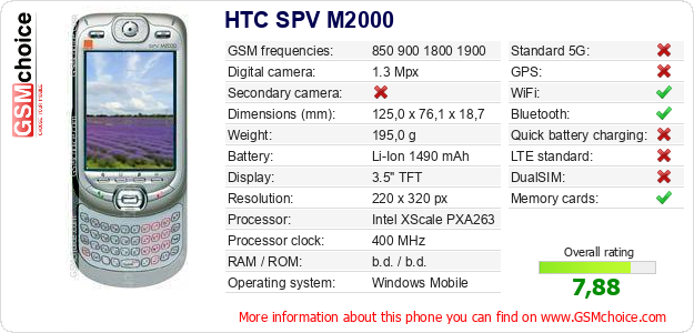 Do you have your website? Do you want to insert information about basic phone data of HTC SPV M2000 somewhere? It is very easy. You can download the picture, or copy and paste the code below on the page:Pasting this code will display the following image: