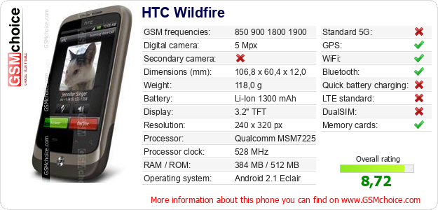 Do you have your website? Do you want to insert information about basic phone data of HTC Wildfire somewhere? It is very easy. You can download the picture, or copy and paste the code below on the page:Pasting this code will display the following image: