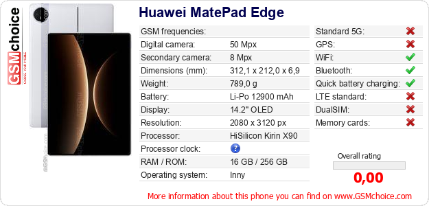 Do you have your website? Do you want to insert information about basic phone data of Huawei MatePad Edge somewhere? It is very easy. You can download the picture, or copy and paste the code below on the page:Pasting this code will display the following image: