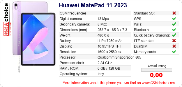 Do you have your website? Do you want to insert information about basic phone data of Huawei MatePad 11 2023 somewhere? It is very easy. You can download the picture, or copy and paste the code below on the page:Pasting this code will display the following image: