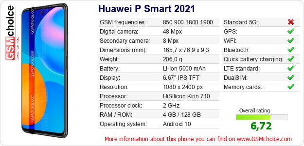 Do you have your website? Do you want to insert information about basic phone data of Huawei P Smart 2021 somewhere? It is very easy. You can download the picture, or copy and paste the code below on the page:Pasting this code will display the following image: