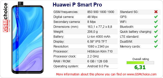 Do you have your website? Do you want to insert information about basic phone data of Huawei P Smart Pro somewhere? It is very easy. You can download the picture, or copy and paste the code below on the page:Pasting this code will display the following image:
