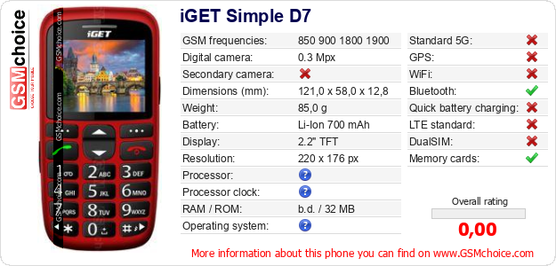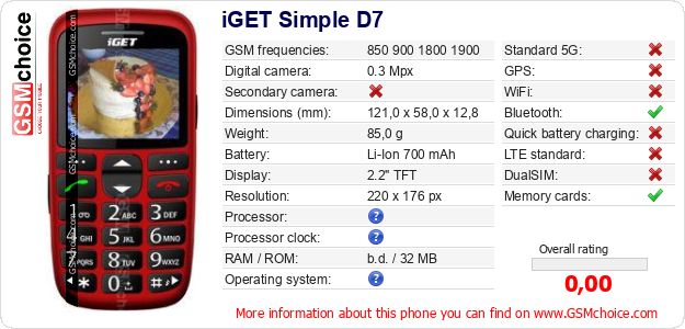 Do you have your website? Do you want to insert information about basic phone data of iGET Simple D7 somewhere? It is very easy. You can download the picture, or copy and paste the code below on the page:Pasting this code will display the following image: