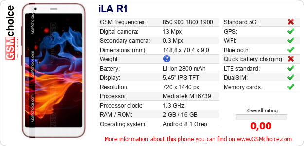 Do you have your website? Do you want to insert information about basic phone data of iLA R1 somewhere? It is very easy. You can download the picture, or copy and paste the code below on the page:Pasting this code will display the following image: