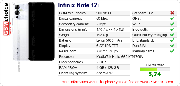 Do you have your website? Do you want to insert information about basic phone data of Infinix Note 12i somewhere? It is very easy. You can download the picture, or copy and paste the code below on the page:Pasting this code will display the following image: