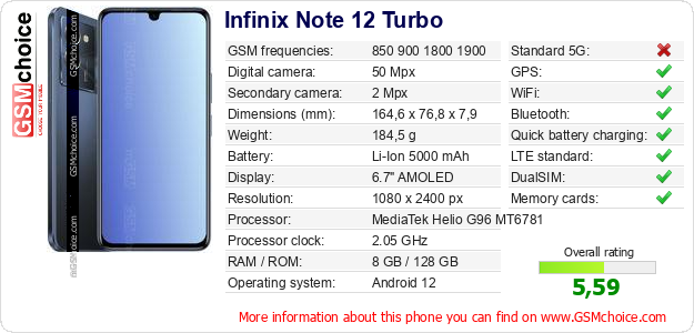 Do you have your website? Do you want to insert information about basic phone data of Infinix Note 12 Turbo somewhere? It is very easy. You can download the picture, or copy and paste the code below on the page:Pasting this code will display the following image: