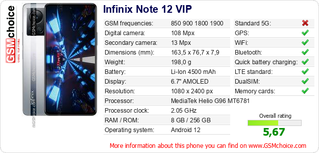 Do you have your website? Do you want to insert information about basic phone data of Infinix Note 12 VIP somewhere? It is very easy. You can download the picture, or copy and paste the code below on the page:Pasting this code will display the following image: