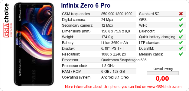 Do you have your website? Do you want to insert information about basic phone data of Infinix Zero 6 Pro somewhere? It is very easy. You can download the picture, or copy and paste the code below on the page:Pasting this code will display the following image: