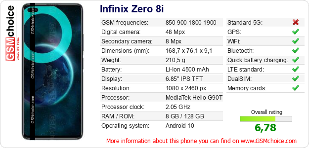 Do you have your website? Do you want to insert information about basic phone data of Infinix Zero 8i somewhere? It is very easy. You can download the picture, or copy and paste the code below on the page:Pasting this code will display the following image: