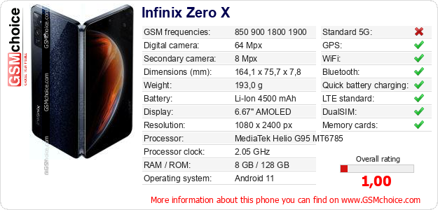 Do you have your website? Do you want to insert information about basic phone data of Infinix Zero X somewhere? It is very easy. You can download the picture, or copy and paste the code below on the page:Pasting this code will display the following image: