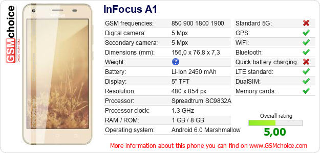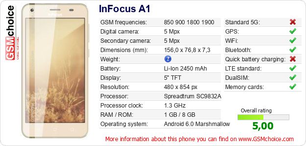 Do you have your website? Do you want to insert information about basic phone data of InFocus A1 somewhere? It is very easy. You can download the picture, or copy and paste the code below on the page:Pasting this code will display the following image: