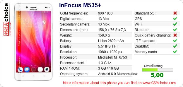Do you have your website? Do you want to insert information about basic phone data of InFocus M535+ somewhere? It is very easy. You can download the picture, or copy and paste the code below on the page:Pasting this code will display the following image: