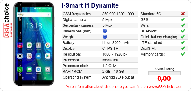 Do you have your website? Do you want to insert information about basic phone data of I-Smart i1 Dynamite somewhere? It is very easy. You can download the picture, or copy and paste the code below on the page:Pasting this code will display the following image:
