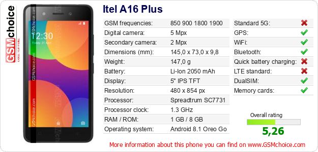 Do you have your website? Do you want to insert information about basic phone data of Itel A16 Plus somewhere? It is very easy. You can download the picture, or copy and paste the code below on the page:Pasting this code will display the following image: