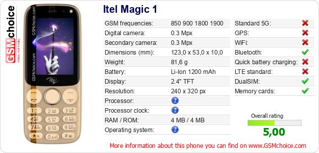 Do you have your website? Do you want to insert information about basic phone data of Itel Magic 1 somewhere? It is very easy. You can download the picture, or copy and paste the code below on the page:Pasting this code will display the following image: