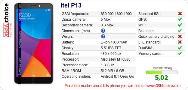 Do you have your website? Do you want to insert information about basic phone data of Itel P13 somewhere? It is very easy. You can download the picture, or copy and paste the code below on the page:Pasting this code will display the following image: