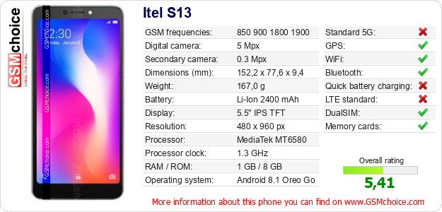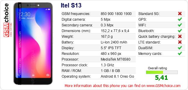 Do you have your website? Do you want to insert information about basic phone data of Itel S13 somewhere? It is very easy. You can download the picture, or copy and paste the code below on the page:Pasting this code will display the following image: