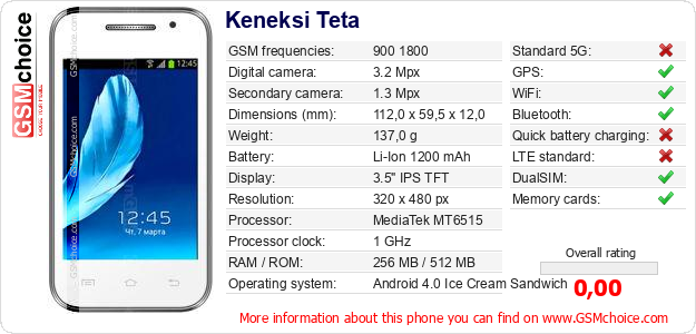 Do you have your website? Do you want to insert information about basic phone data of Keneksi Teta somewhere? It is very easy. You can download the picture, or copy and paste the code below on the page:Pasting this code will display the following image: