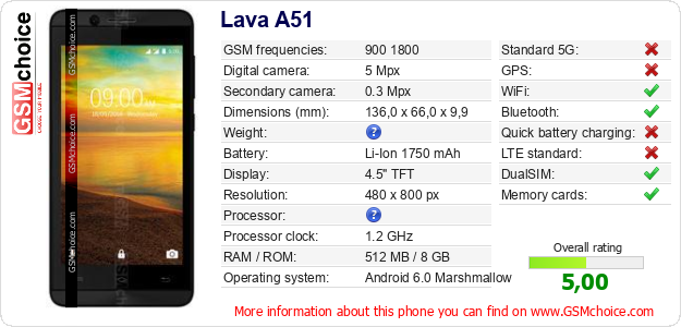 Do you have your website? Do you want to insert information about basic phone data of Lava A51 somewhere? It is very easy. You can download the picture, or copy and paste the code below on the page:Pasting this code will display the following image: