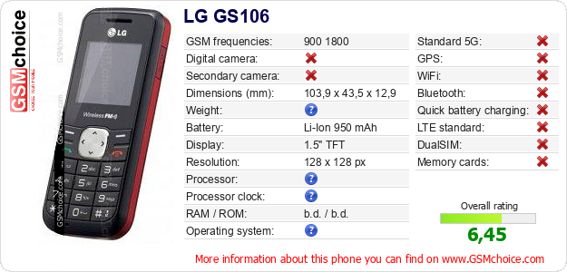 Do you have your website? Do you want to insert information about basic phone data of LG GS106 somewhere? It is very easy. You can download the picture, or copy and paste the code below on the page:Pasting this code will display the following image: