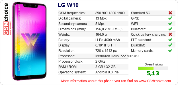 Do you have your website? Do you want to insert information about basic phone data of LG W10 somewhere? It is very easy. You can download the picture, or copy and paste the code below on the page:Pasting this code will display the following image: