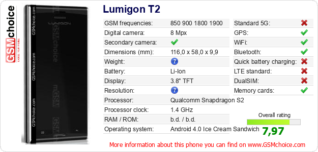 Do you have your website? Do you want to insert information about basic phone data of Lumigon T2 somewhere? It is very easy. You can download the picture, or copy and paste the code below on the page:Pasting this code will display the following image: