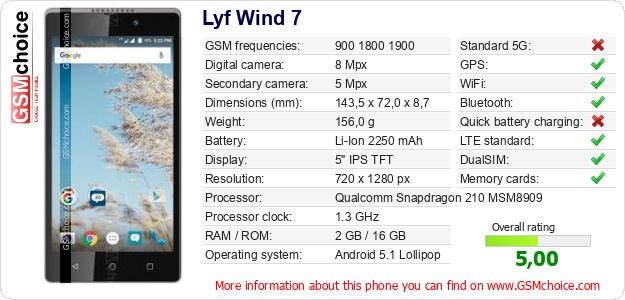 Do you have your website? Do you want to insert information about basic phone data of Lyf Wind 7 somewhere? It is very easy. You can download the picture, or copy and paste the code below on the page:Pasting this code will display the following image: