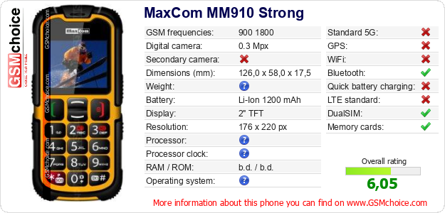 Do you have your website? Do you want to insert information about basic phone data of MaxCom MM910 Strong somewhere? It is very easy. You can download the picture, or copy and paste the code below on the page:Pasting this code will display the following image:
