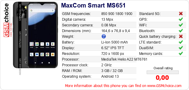 Do you have your website? Do you want to insert information about basic phone data of MaxCom Smart MS651 somewhere? It is very easy. You can download the picture, or copy and paste the code below on the page:Pasting this code will display the following image: